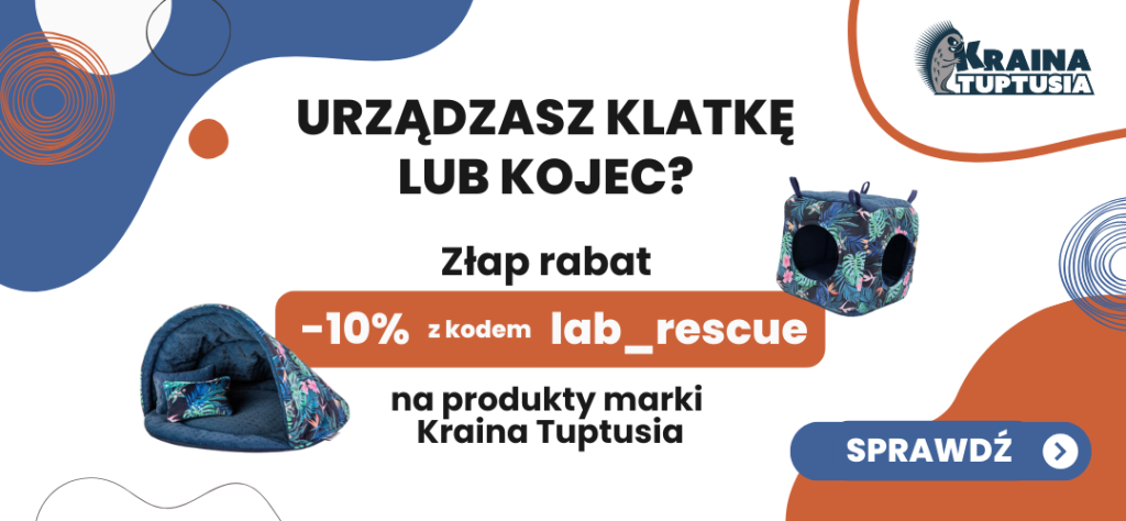 Ale to nie wszystko! Marka przekazała nam także kod rabatowy dla adoptujących! Rabat 10% z kodem lab_rescue obowiązuje na produkty marki Kraina Tuptusia na oficjalnym sklepie: https://krainatuptusia.pl